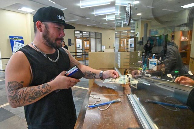 Edward Pangelinan, from Yona, pays a bill at the GPA/GWA Fadian headquarters on Thursday, Feb. 22, 2024, in Mangilao.