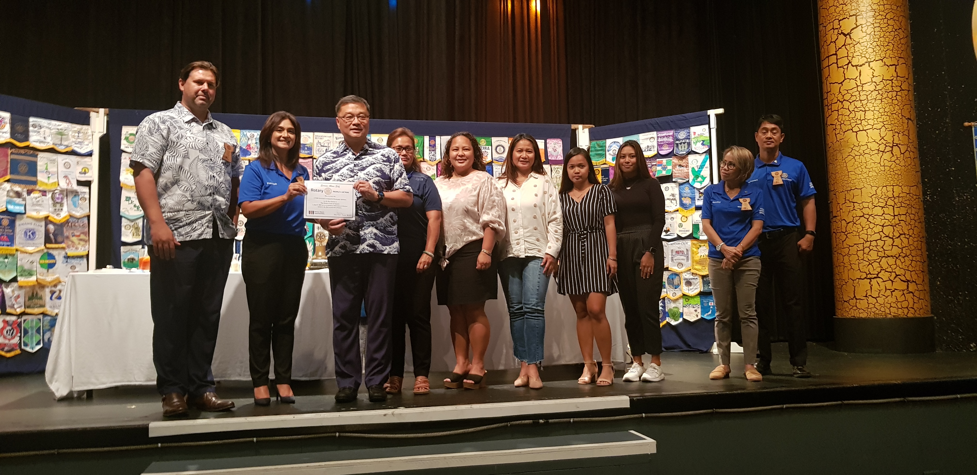 Jerry Tan, chairman of the newly established Governor’s Council of Economic Advisers, third left, poses with some of his team members and Rotary Club of Saipan officials led by president Sonya Dancoe. Photo by Junhan B. Todino