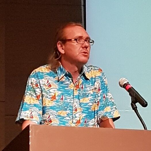Digital Saipan marketing manager Robert Exley speaks during the launch of Island Ride on Friday at Saipan World Resort. Photo by Lori Lyn C. Lirio