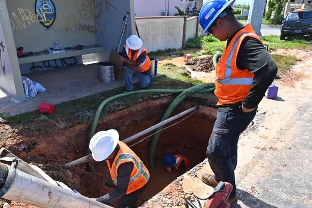 Guam Waterworks Authority personnel make repairs to a pipe on July 2, 2023, along Route 16 in Barrigada Heights.