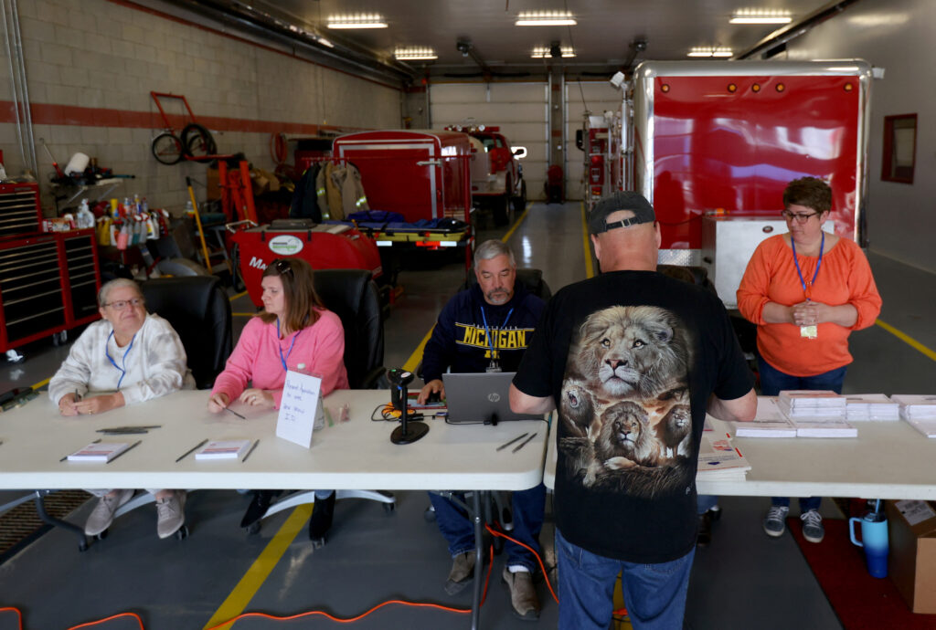 A man votes, as Democrats and Republicans hold their Michigan primary presidential election, at the Sunfield Fire Barn in Sunfield, Michigan, U.S. February 27, 2024.