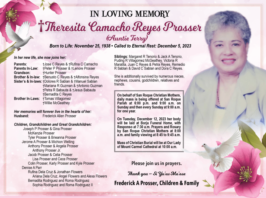 †Theresita “Auntie Terry” Camacho Reyes Prosser