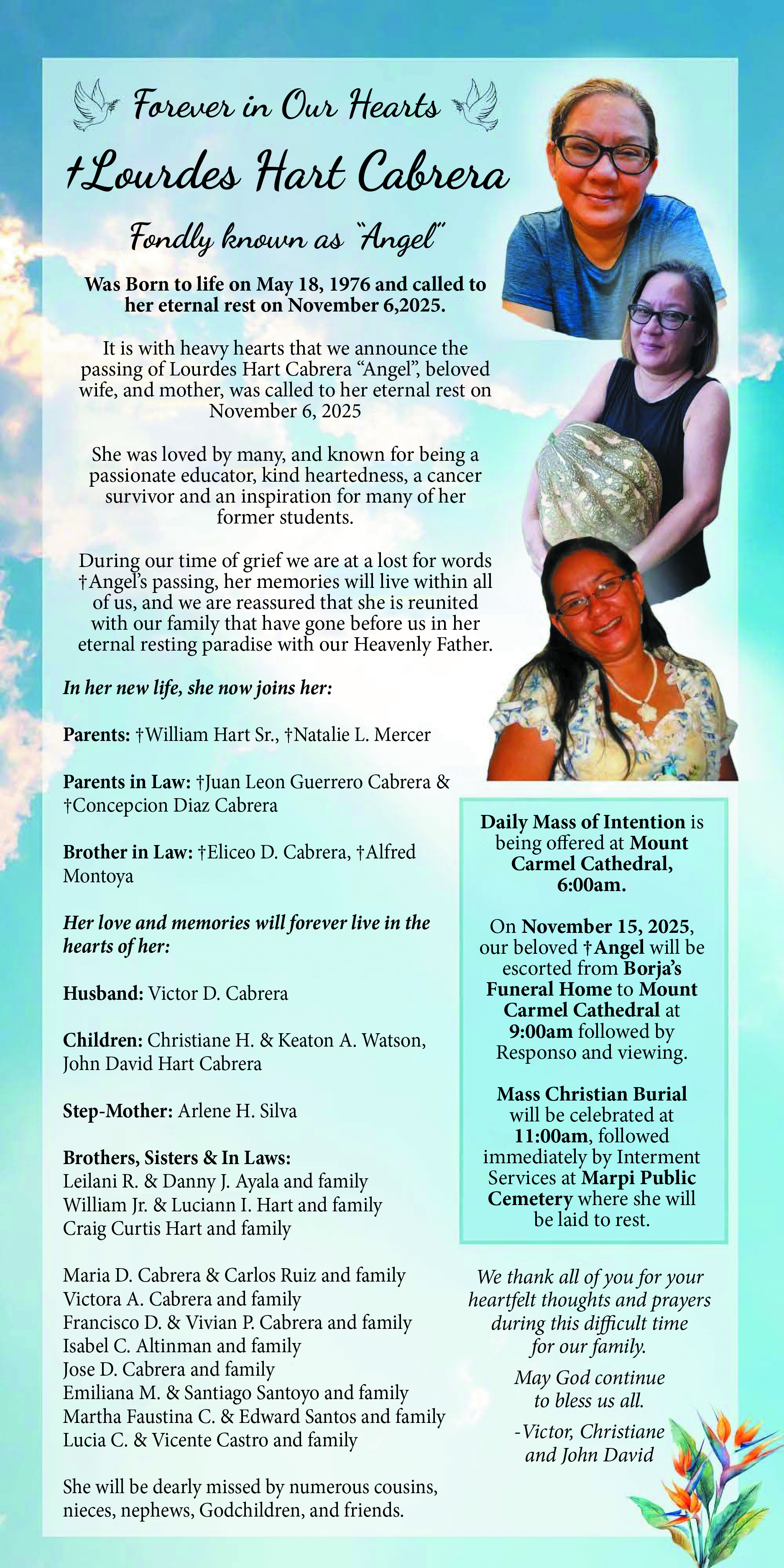 Written by Hazel Sadian• November 12, 2025• 5:30 am• Obituaries †Lourdes “Angel” Hart Cabrera HomeObituaries†Lourdes “Angel” Hart Cabrera ← Previous StoryMobil seeks judge’s recusal in long-running gas price lawsuit Leave a Reply Cancel replyYour email address will not be published. Required fields are marked *Comment * Name Email Website Save my name, email, and website in this browser for the next time I comment. [elementor-template id=”36674″]