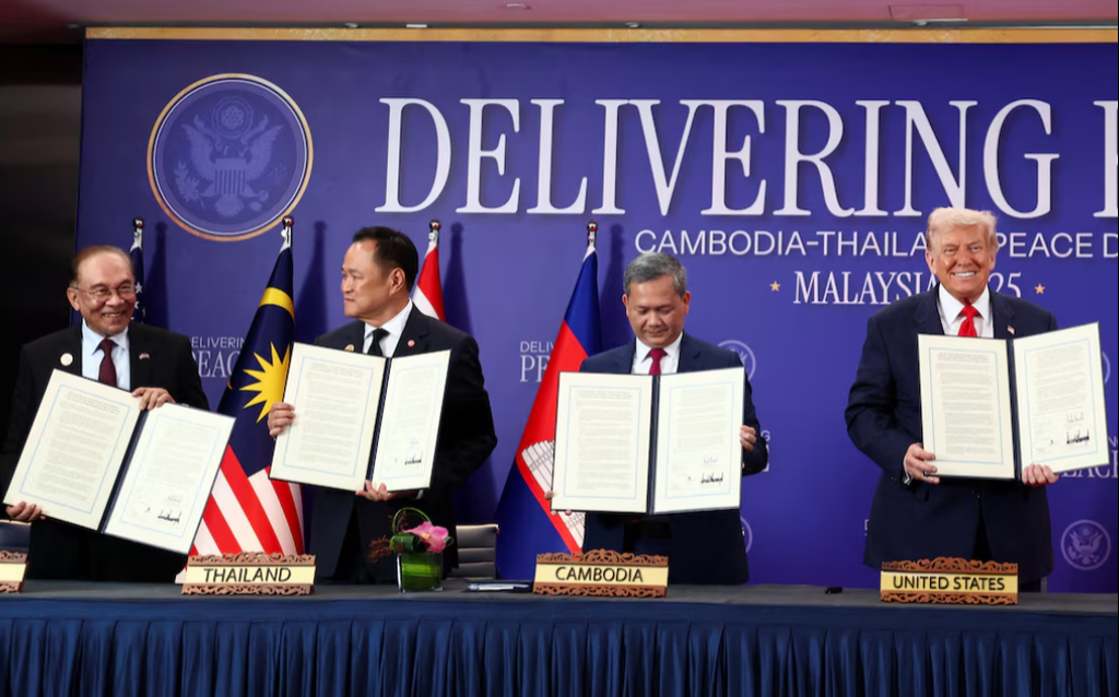 KUALA LUMPUR (Reuters) — The leaders of Thailand and Cambodia signed an expanded ceasefire deal on Sunday watched over by President Donald Trump, who landed in Malaysia for the ASEAN Summit and to oversee a series of pivotal trade talks.