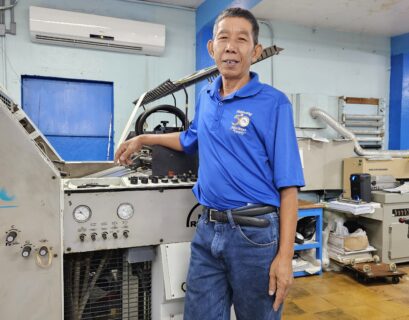 “Kuya Arsen” poses with one of the machines he operates at Mvariety on August 31, 2023. 35 years—a span that might seem...