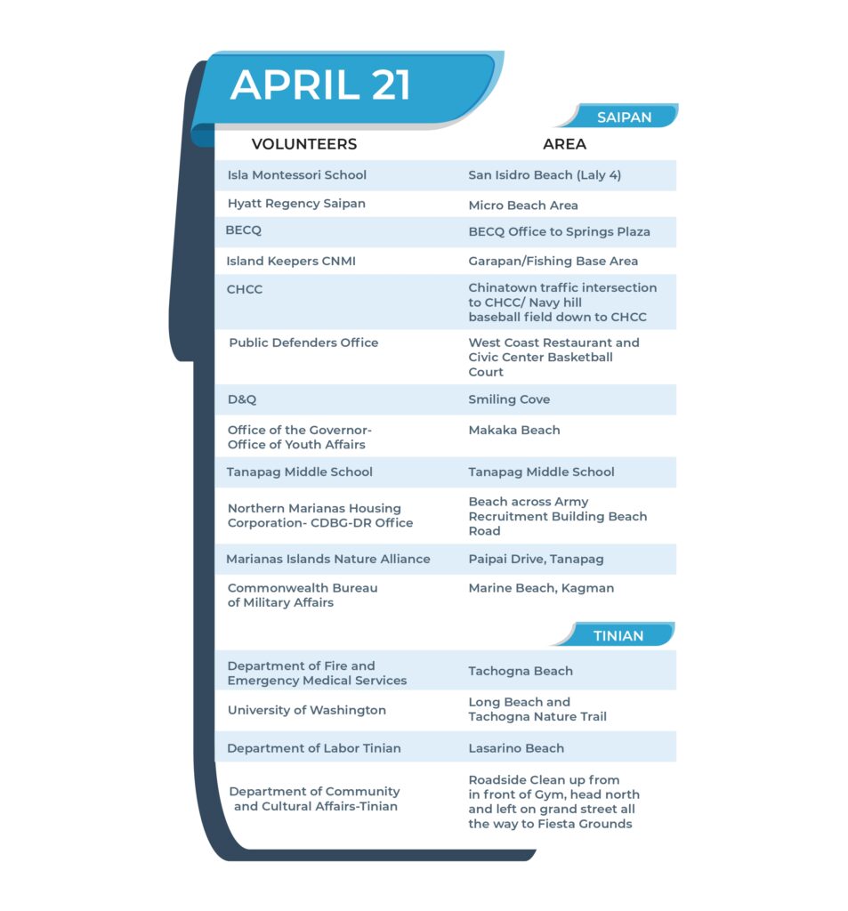 The CNMI Islandwide Clean Up day is the island’s contribution to the 53rd World Earth Day 2023 which is also celebrated on Saturday 22 April.