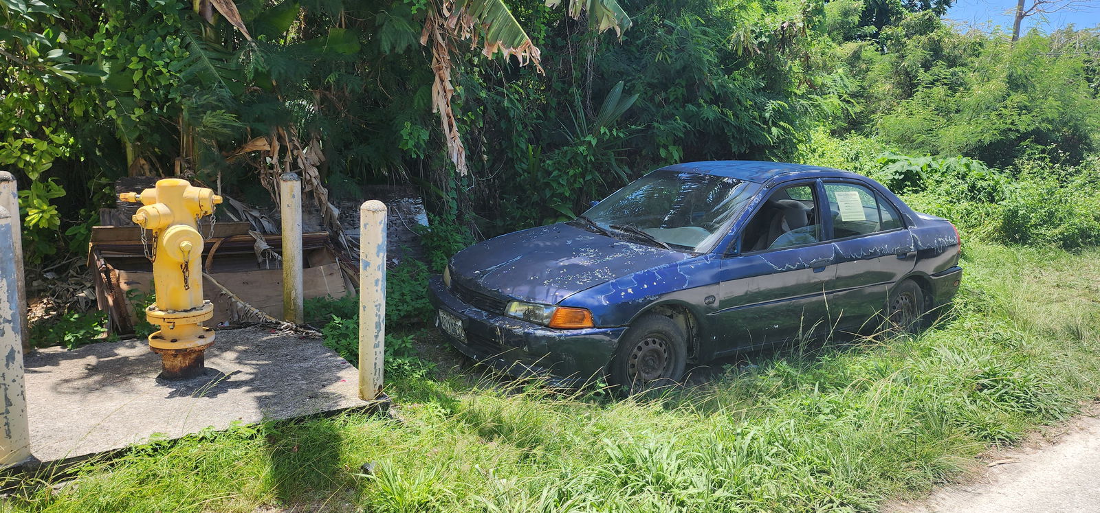 Junk and abandoned vehicle parking and storage is prohibited by law but there are thousands of abandoned vehicles parked around the islands even on public lands.