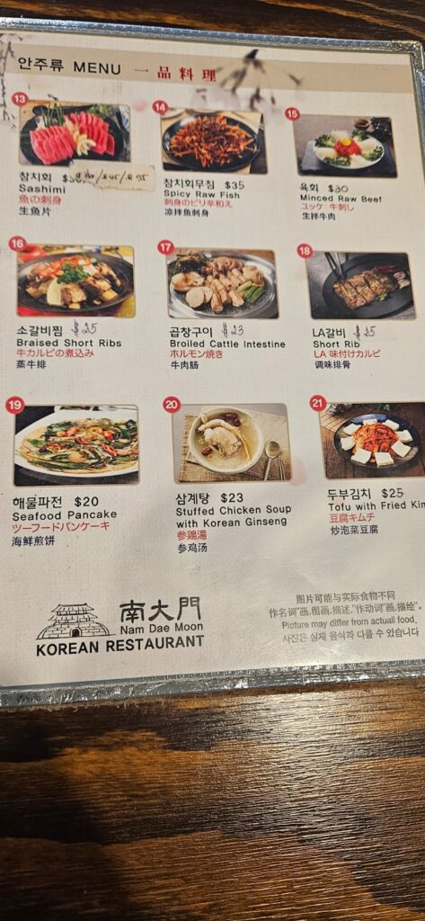 Under their hands-on management, Nam Dae Moon has flourished, earning a reputation for its delectable dishes and warm, family-friendly atmosphere. The restaurant’s menu caters to diverse palates, with tourists frequently gravitating toward the fresh tuna sashimi. Meanwhile, locals favor hearty Korean staples such as braised shortribs, Korean BBQ, and soft tofu soup.