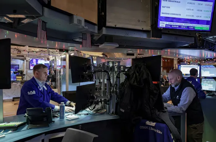 (Reuters) — Wall Street ended higher on Monday, with surging financial shares helping lift the Dow Jones Industrial Average to an all-time peak, while energy firms jumped after a U.S. military strike captured Venezuelan President Nicolas Maduro.