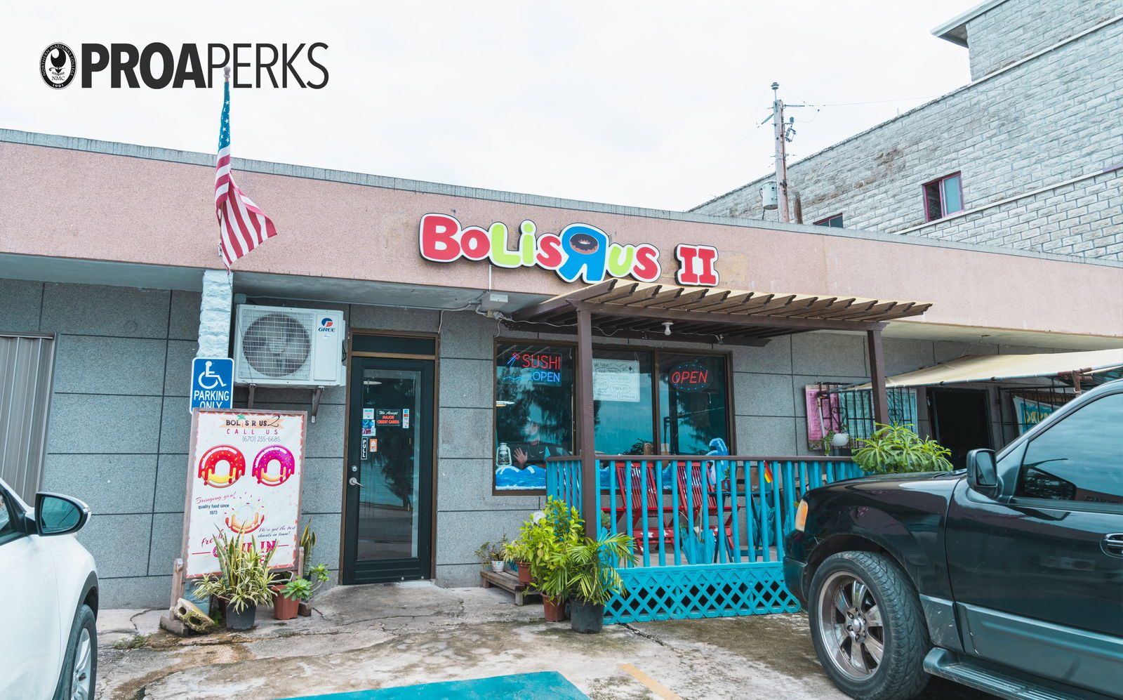 Bolis R Us 2 joins the growing list of ProaPerks partners, such as 153 Restaurant, 360 Restaurant, 4EVER CNMI, Alamo Car Rental, AllStar Sporting Goods, Aqua Connections, Inc., Athlete’s Foot, Avis Rent A Car, BAB Korean Restaurant Cup Bab, Chagi Norf Kitchen, Boarderline, Candle J, Caravan of Food, Casa Decor, Casa Urashima, Chelu Alynez Enterprise, Chungi Wa Korean Restaurant, Coral Garden Hotel, Cosmos Lounge, D’ Chef’s Kitchen, Docomo Pacific, Dollar Days, Enterprise Car Rental, Ete Cafe, Fishing Tackle and Sporting Goods, Fork and Spoon, Garapan Restaurant Cafe & Grill, Gold’s Gym, Grandvrio Resort Saipan, Great Harvest, Boyer Trading Company LLC. dba Ginen Saipan, Ha’ani Company, Healing Stones Spa, Highway Express Auto Care Center, Herman’s Modern Bakery, Inc./Tan Marikita’s Cafe, Hertz Rental Car, Hyatt, Ice Island Coffee & Ice Deserts, Hotel Americano, Ina’s Kitchen, Isla Shave Ice, International Roller Skates, Java Joe’s, JC Cafe, Jhen’s Sweet Corner Cakes, Judy’s Cafe & Restaurant, Junlyn Salon, Kentucky Fried Chicken/Taco Bell, Kiki’s, Latte Build Gym, Lohas Massage, Lohas Nails, Lucky Store, Lucky II Mart, Magbers Snack Bar, Majesty Restaurant, Mama D’s Cafe, Mariana Lighthouse, Marianas Creation, MMC & Pacific Labs, LLC, Megabyte, Mermaid Restaurant & Milk tea, Micafe Snack Corner, Nam Dae Moon, National Car Rental, Natural Nail & Spa, Neni Girl Nails, NMC Bookstore, Ocean Candy, Ocean Star Restaurant, Pacific Home Appliances, Paradise Dental Spa, Pena House Boutique, Pizzeria Bar & Grill, Pokiyaki, Saipan Computer Services, Shirley’s Cafe, Salty’s, Summer Snow Cafe & Kids Corner cafe, Summit Auto Repair Shop, Surf Club, Residence Lodge, The Ohala Foundation Clothing, The Pacific Supply, The Shack, Time Creation Corp., Tinian Diamond Hotel, Tom Yum Restaurant, Tribe Marianas, and Triple J Motors.