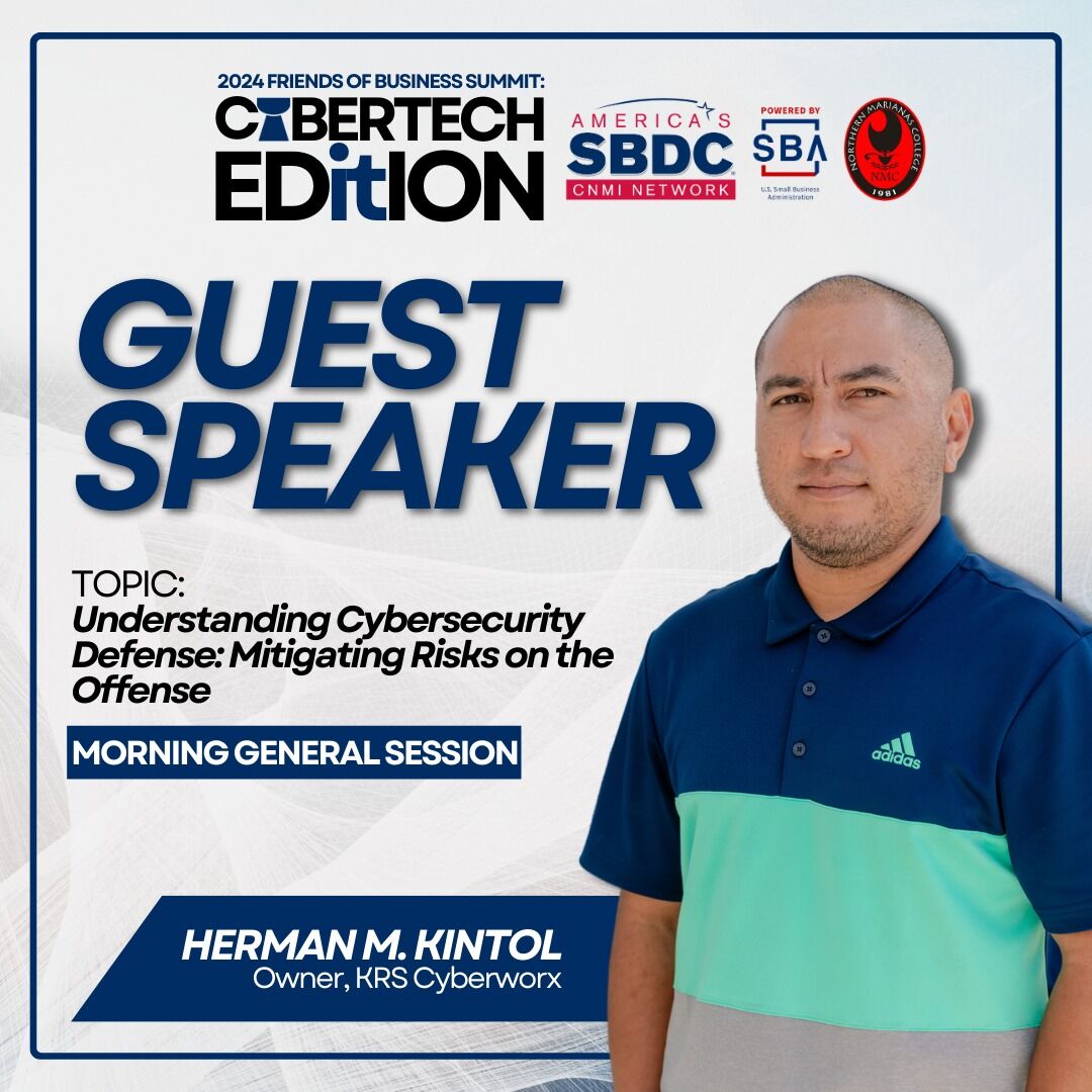 In light of this pressing need, the CNMI Small Business Development Center Network is honored to announce Herman M. Kintol, owner of KRS Cyberworx, a leading cybersecurity firm, as its distinguished speaker for the morning general session at the upcoming 2024 Friends of Business: Cybertech Edition Summit. The event will take place on Thursday, April 4, 2024 at the Crowne Plaza Resort Saipan from 8 a.m. to 5 p.m.