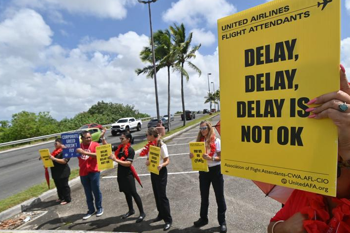 HAGÅTÑA (The Guam Daily Post) — United Airlines flight attendants and their supporters gathered in front of the A.B. Won Pat International Airport Wednesday in what has become a regular showing over demands for a better contract. Rsei Isim, the president of United Airlines Association of Flight Att…