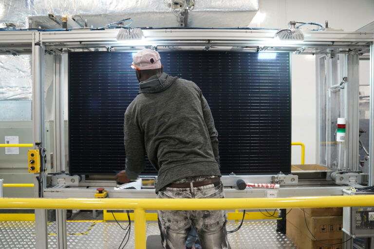 An employee works on solar panels at the QCells solar energy manufacturing factory in Dalton, Georgia, March 2, 2023. WASHINGTON (Reuters) — U.S. labor costs increased solidly in the third quarter amid strong wage growth, the latest indication that the Federal Reserve could keep interest rates high…