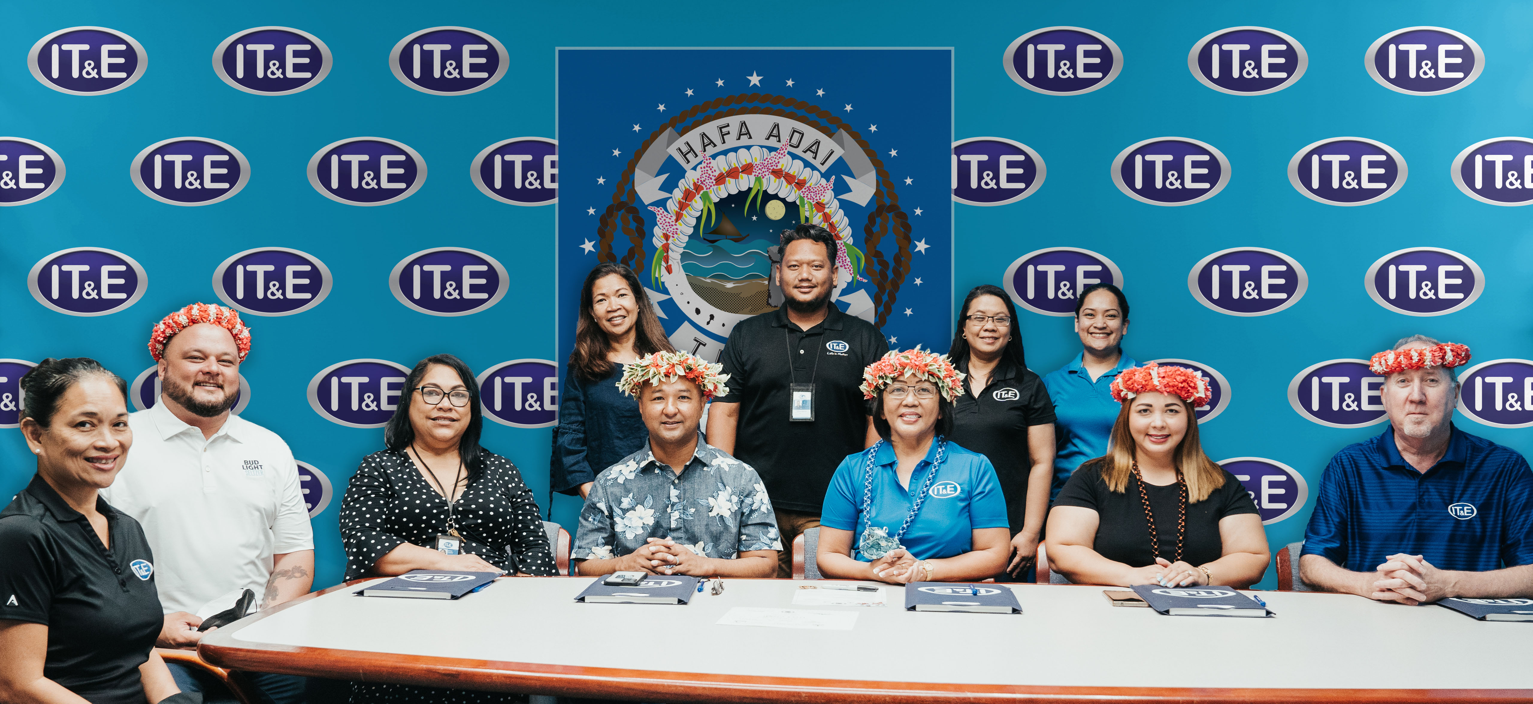 IT&E has expressed commitment to the Hafa Adai & Tirow Pledge which embodies the preservation and integration of the indigenous Chamorro and Refaluwasch cultures into IT&E’s everyday business practice. From left, Velma Palacios, IT&E and chamber director; Shayne Villanueva, vice president, Saipan Chamber of Commerce; Janice Tenorio, IT&E and chamber director; Leriza Debrum, IT&E; Joe Guerrero, president, Saipan Chamber of Commerce; Ed Javier, IT&E; Rose Soledad, general manager, IT&E; Sharon Abragan, IT&E; Natasha Tomokane, IT&E; Priscilla M. Iakopo, managing director, Marianas Visitors Authority; and Rob Harrell, executive director of customer operations and network operations center, IT&E.