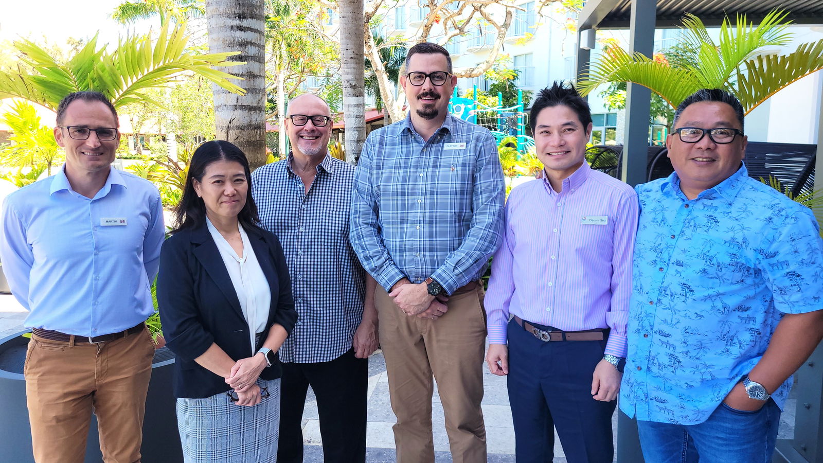 The Hotel Association of the Northern Mariana Islands announced the composition of its 2024 Board of Directors officers on March 8, 2024, at Crowne Plaza Resort Saipan following its monthly board meeting. From right, Vice Chairman Ivan Quichocho (GM, Century Hotel), Chairman Dennis Seo (GM, Pacific Islands Club Saipan), Secretary Clayton Darlington (GM, Crowne Plaza Resort Saipan), Board Member Jim Arenovski (Owner, Island Training Solutions), Board Member Sachiko Gerrard (GM, Aqua Resort Club Saipan), and Board Member Martin Jambor (GM, Kanoa Resort).