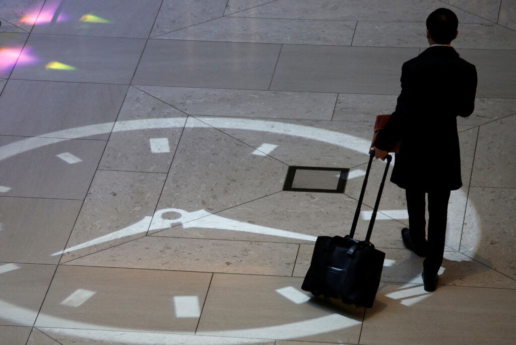A man walks inside the mall of a commercial tower at the financial Central district in Hong Kong on Nov. 23, 2017.