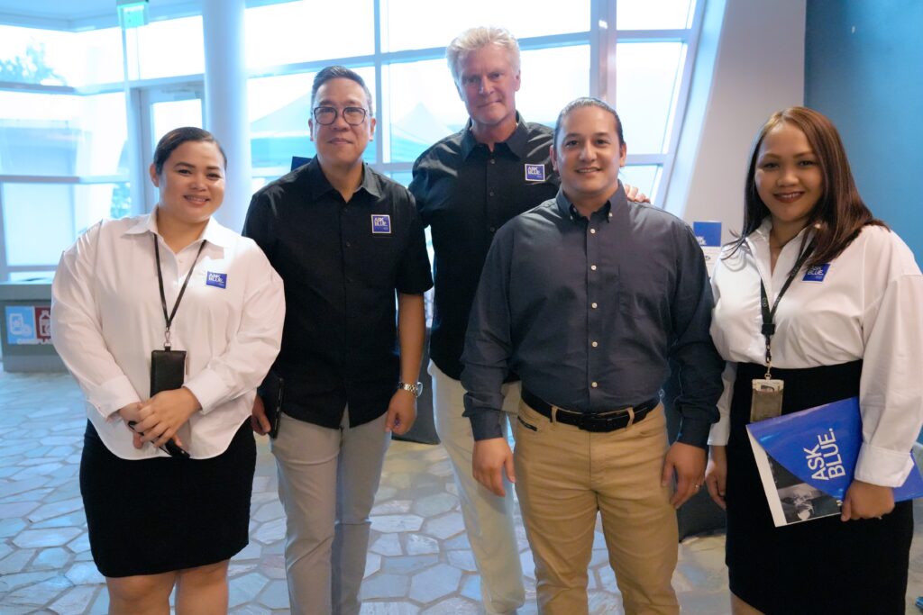 IT&E celebrated the rebranding of its Enterprise services at a mixer with clients held at the Guam Museum on Oct. 24, 2023. Pictured from left are Latara P. Sasamoto, Enterprise Sales Account Manager at IT&E; Jimson Dator, Senior Executive Director of Sales at IT&E; Jim Oehlerking, President of IT&E, John J. Rivera, Director of Human Resources and Corporate Development at Citadel Pacific Ltd., and Clarissa T. Guerrero, Assistant Sales Manager of Enterprise Sales at IT&E.