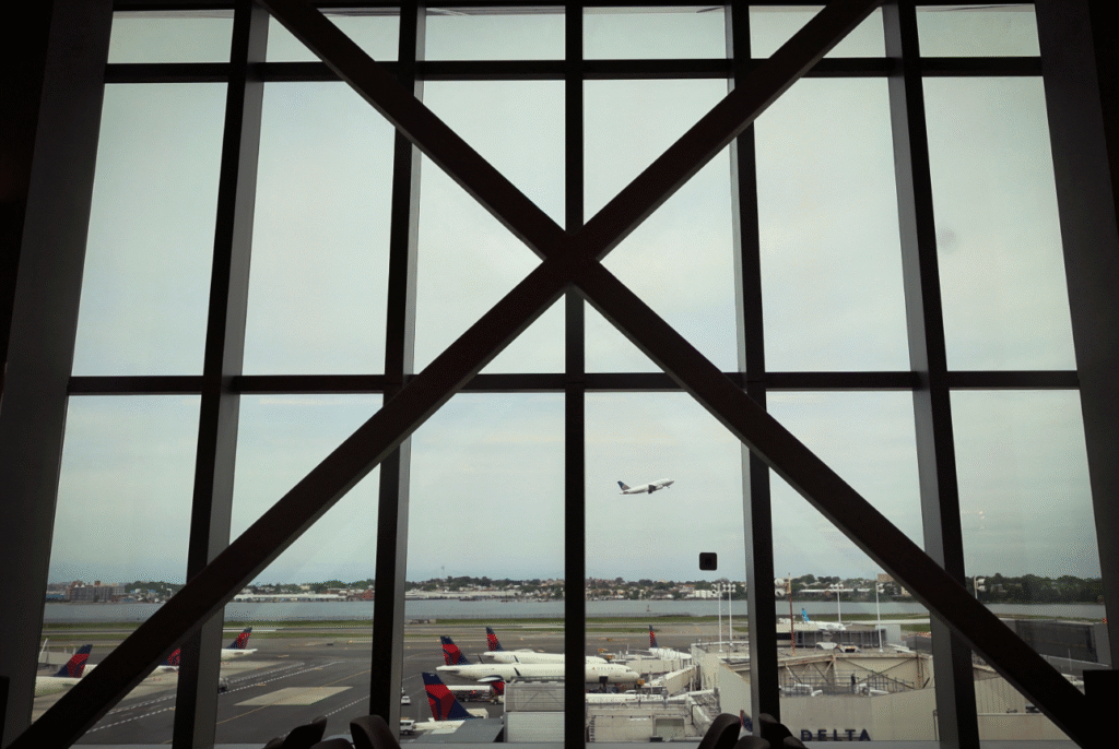 A plane takes off as seen from inside the newly completed 1.3 million-square foot $4 billion Delta Airlines Terminal C at LaGuardia Airport in the Queens borough of New York City, New York, U.S., June 1, 2022.
