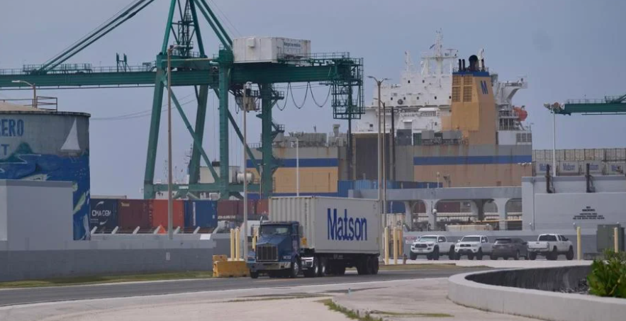 A container truck is seen traveling down the road at the Port Authority of Guam in Piti on Jan. 29, 2025.Photo by Frank San Nicolas/The Guam Daily Post