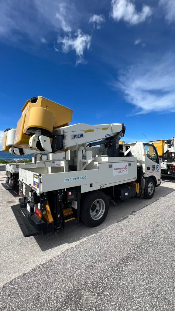 An NTT bucket truck to be used for network repairs in Guam.