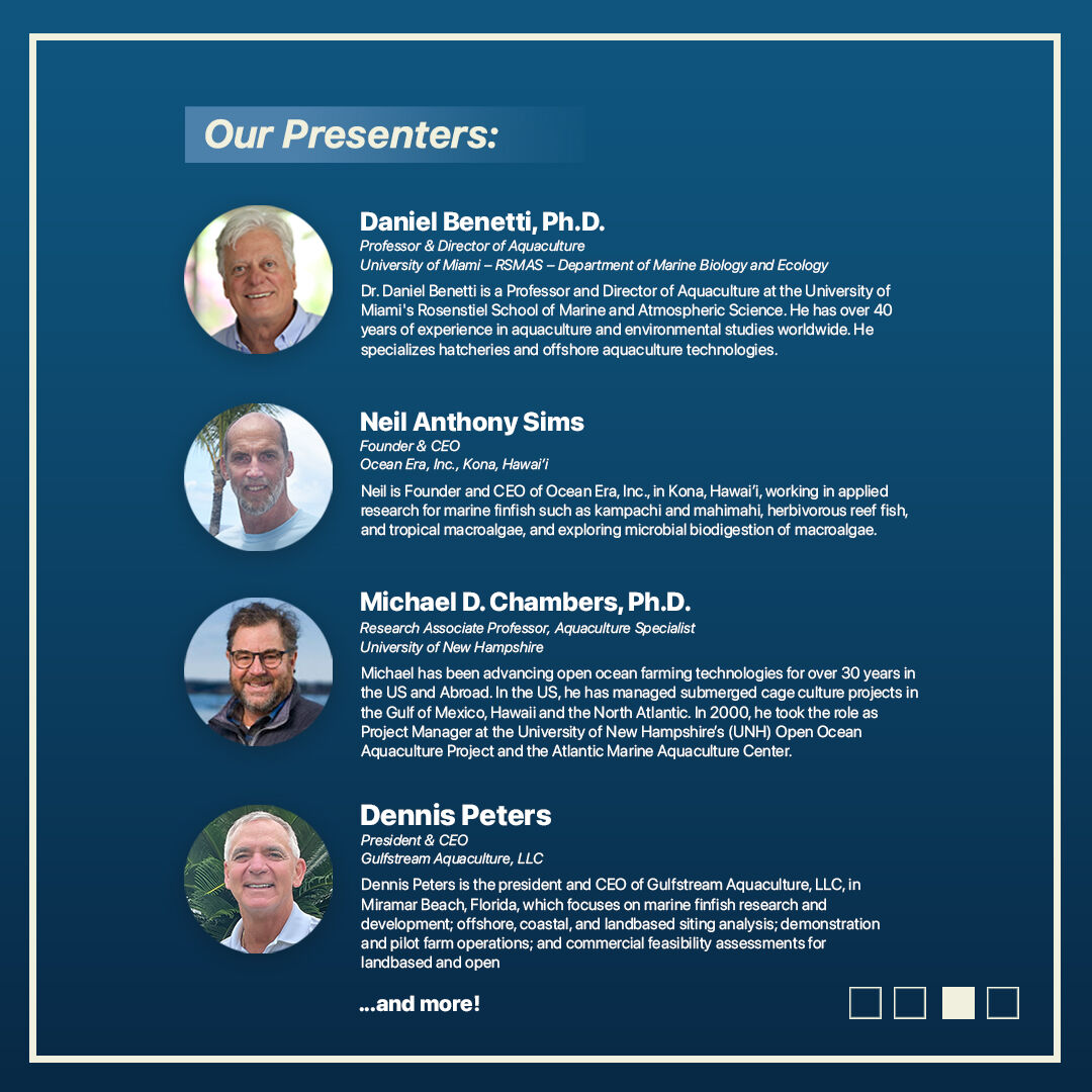 OPEN Ocean Aquaculture is an emerging approach to raise fish in open ocean waters utilizing submersible cages or net pens. Hawaii has been successfully operating commercial open ocean aquaculture cages in the U.S. In this natural, high energy environment fish grow better and are healthier. Open Ocean Aquaculture reverses the stereo-typical approach to providing for fish protein from “hunting” for fish to “farming fish”.