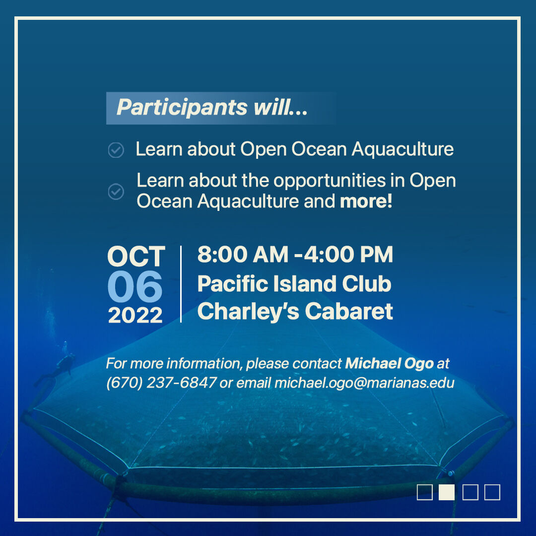To this end KKMP Foundation in conjunction with Northern Marianas College-CREES program will be conducting an Open Ocean Aquaculture symposium to showcase the prospect of fish farming.