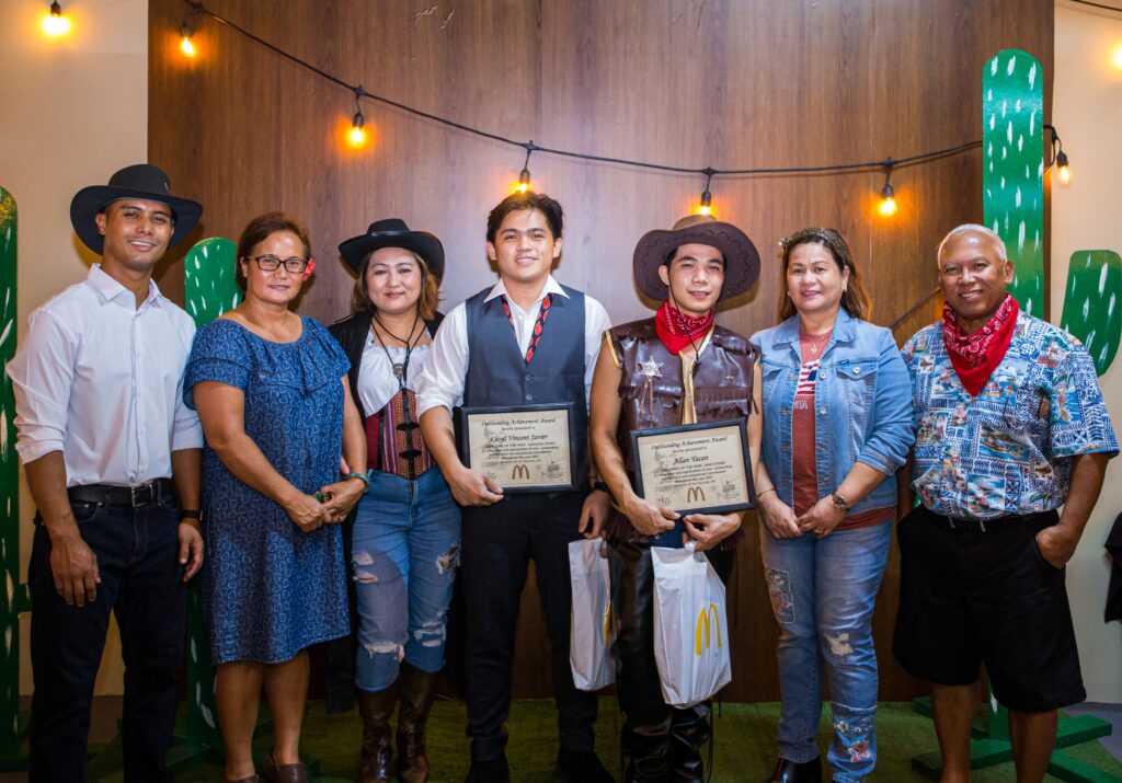 During its Saipan annual employee appreciation party — this year’s theme was “Wild West — at the Ayuyu residence on Dec. 20, 2021, McDonald’s recognized its Employees of the Year for their outstanding job performances, teamwork, and dedication. From left, McDonald’s vice president Joe E. Ayuyu Jr., owner/operator Marcia E. Ayuyu, Garapan general manager Ruthzel Perez, Garapan Employee of the Year 2021 Lloyd Vincent Javier, Middle Road Store Employee of the Year 2021 Allan Yacan, Middle Road store general manager Joyce Asistores, and CEO/president Jose C. Ayuyu.
