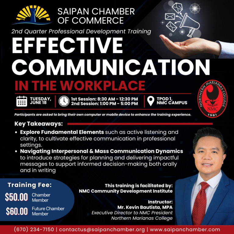 Training participants pose for a group photo with Guam APEX Accelerator Program Manager Boris Hertslet and CNMI SBDC Network Director Nadine Deleon Guerrero. Trainees listen as Boris Hertslet presents on one of the federal contracting requirements. (CNMI SBDC) — The CNMI Small Business Development…