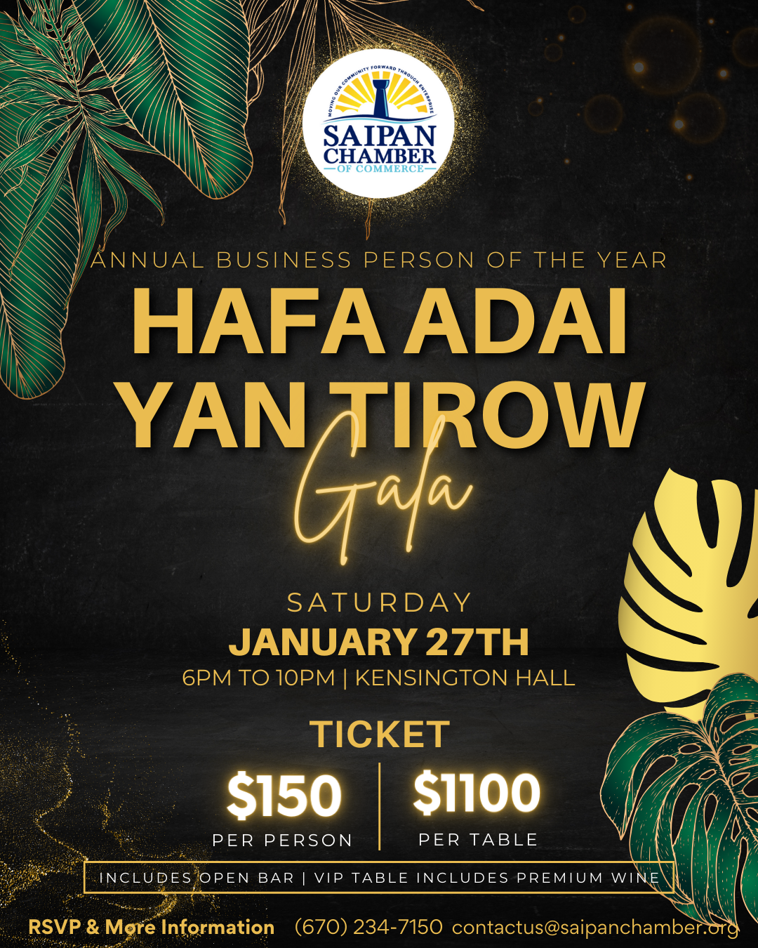 The chamber invites the community to join its members for this night of celebration! Register now through this link: https://business.saipanchamber.com/events/details/2023-annual-business-person-of-the-year-gala-355