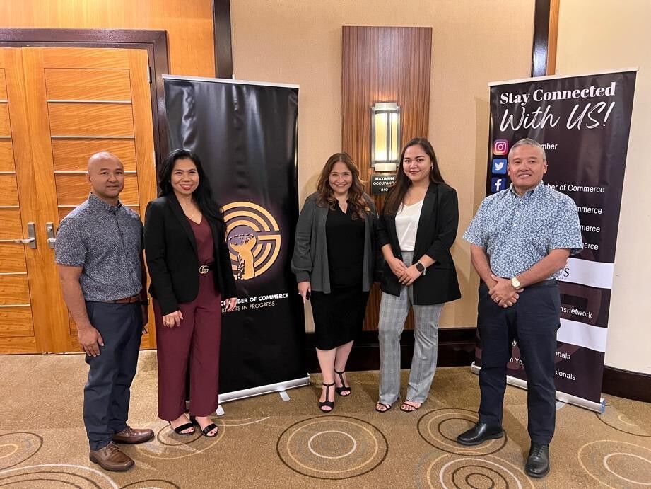 SCC President Joe Guerrero, SCC Board Director Alex Sablan, and SCC Executive Director Kim Camacho recently attended the Guam Chamber of Commerce Economic Outlook 2023 event at the Westin Resort Guam, with the intent of SCC to hosting a similar event on Saipan.