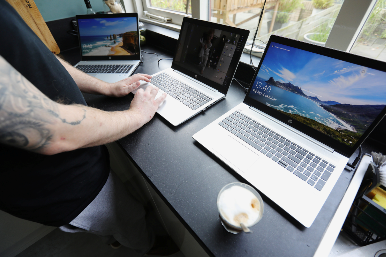 A man works in his kitchen during the Covid-19 outbreak in Sassenheim, the Netherlands on Oct. 2, 2020.
