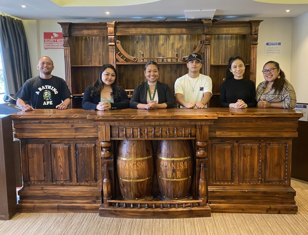 From left, Nick Sablan Jr., The Hook Up general manager; Krissa Deleon Guerrero, retail manager; Jen Sambile, operations manager; budtenders Nicolas Quitugua, Yan Jie S. Malin and Nora Vincent.