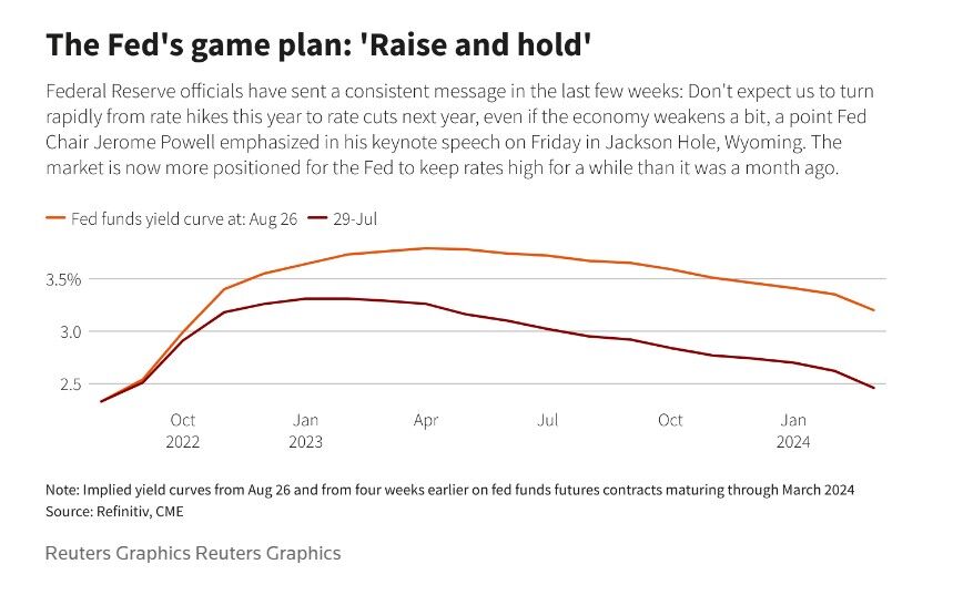 “The pushback is coming from the idea that it’s not about the pace of hikes going forward and how they tighten financial conditions, it’s about the duration of remaining at that restrictive policy stance,” said Garrett Melson, portfolio strategist at Natixis Investment Managers.