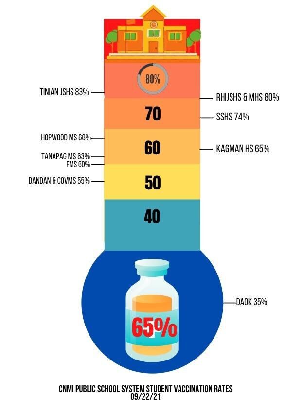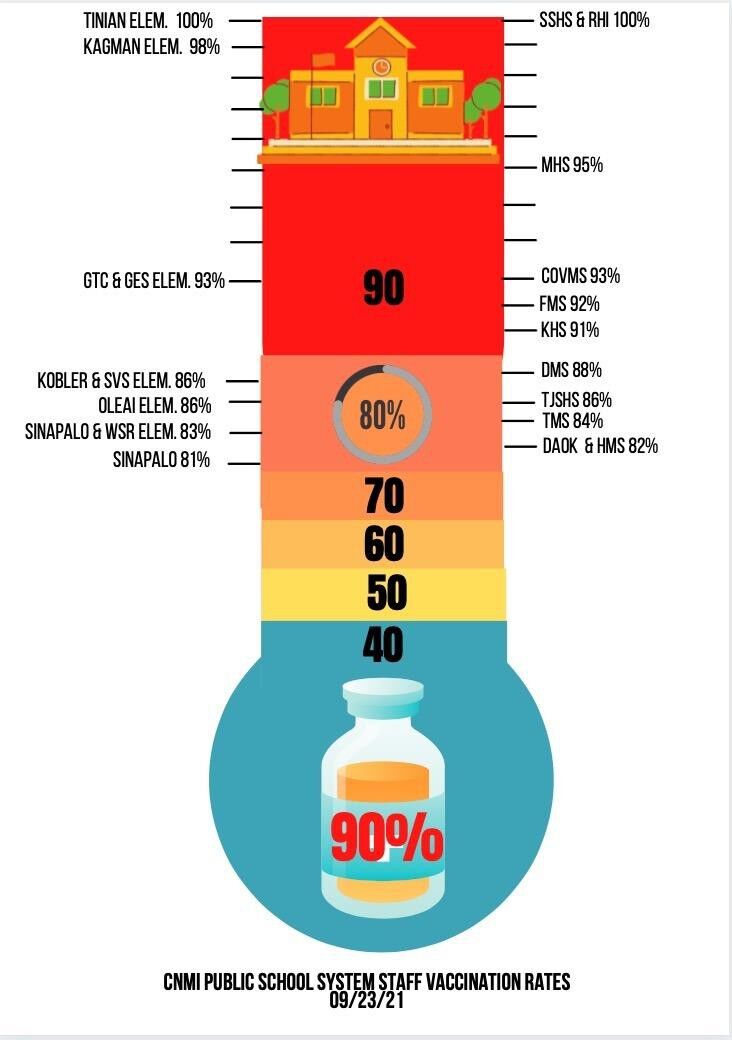 The PSS and CNMI task force have been working day and night to keep us safe from the Coronavirus, while finding alternatives to educating our kids. Currently the public middle schools and high schools have not returned to school at full capacity because the task force requires all eligible persons at each school to be vaccinated and reach at least 80% of the total school population. The teachers and administrators of these schools have met or exceeded 80%.