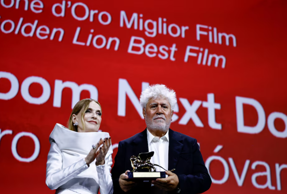 VENICE (Reuters) — Spanish director Pedro Almodovar’s first English-language movie “The Room Next Door,” which tackles the hefty themes of euthanasia and climate change, won the prestigious Golden Lion award at the Venice Film Festival on Saturday.