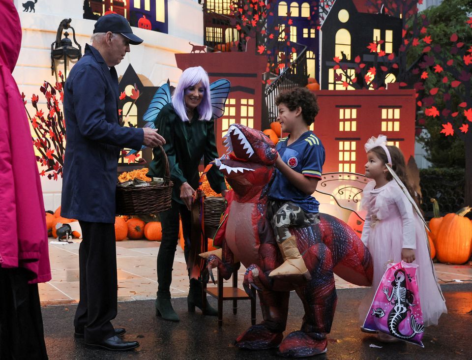 WASHINGTON (Reuters) — President Joe Biden and first lady Jill Biden welcomed trick-or-treaters to the White House to celebrate Halloween on Monday, their first time hosting such a celebration since taking office.