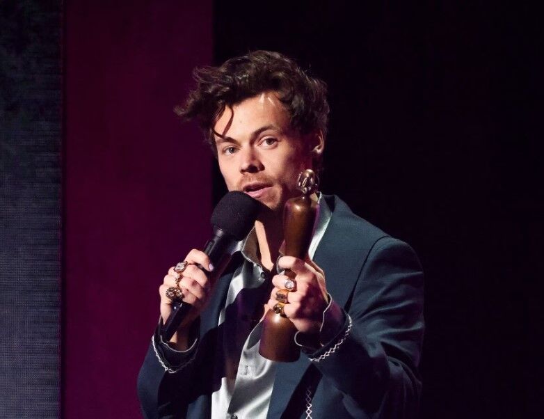 Harry Styles speaks after receiving the award for Best Pop/R&B Act at the Brit Awards at the O2 Arena in London, Britain, Feb. 11, 2023.