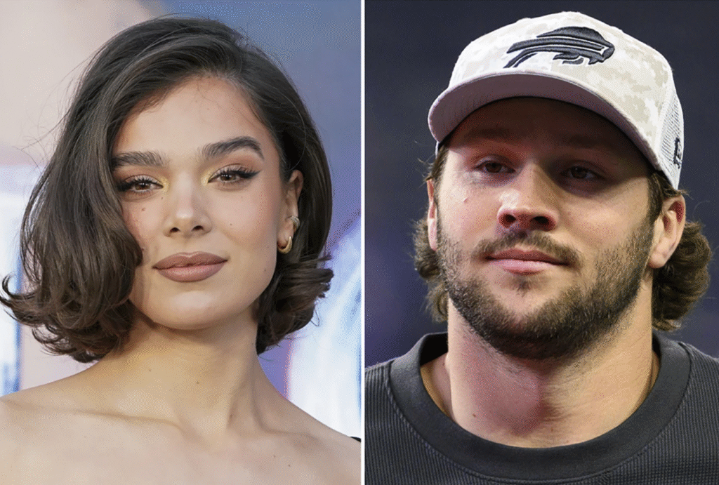This combination of photo shows Hailee Steinfeld and Josh Allen.