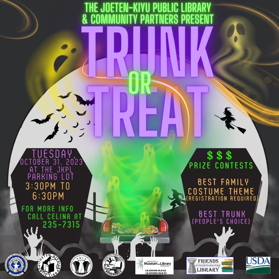 Which spooky trunk will be voted this year’s People’s Choice? Interested community partners and/or sponsors are invited to register a trunk or sponsor this year’s event by emailing foremancelina@gmail.com, calling the library at (670)235-7315 for 2023 TOT Coordinator Celina or by picking up a registration and/or sponsorship form at your friendly Joeten-Kiyu Public Library.