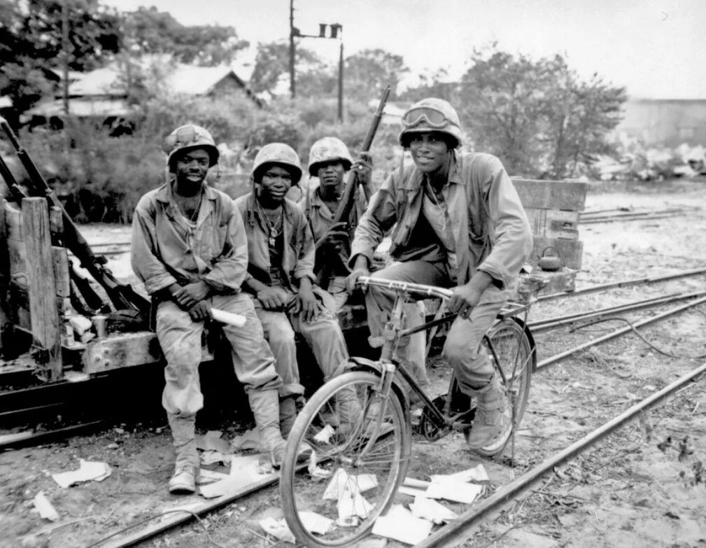In 1942 the first Black Marine recruits trained at a segregated training facility called Montford Point. These Marines were trained for anti-aircraft defense battalions as well as supply and logistical roles. By the end of WWII some 13,000 Montford Point Marines were deployed overseas to the Pacific, including Saipan, Guam, Peleliu, Iwo Jima, and Okinawa.