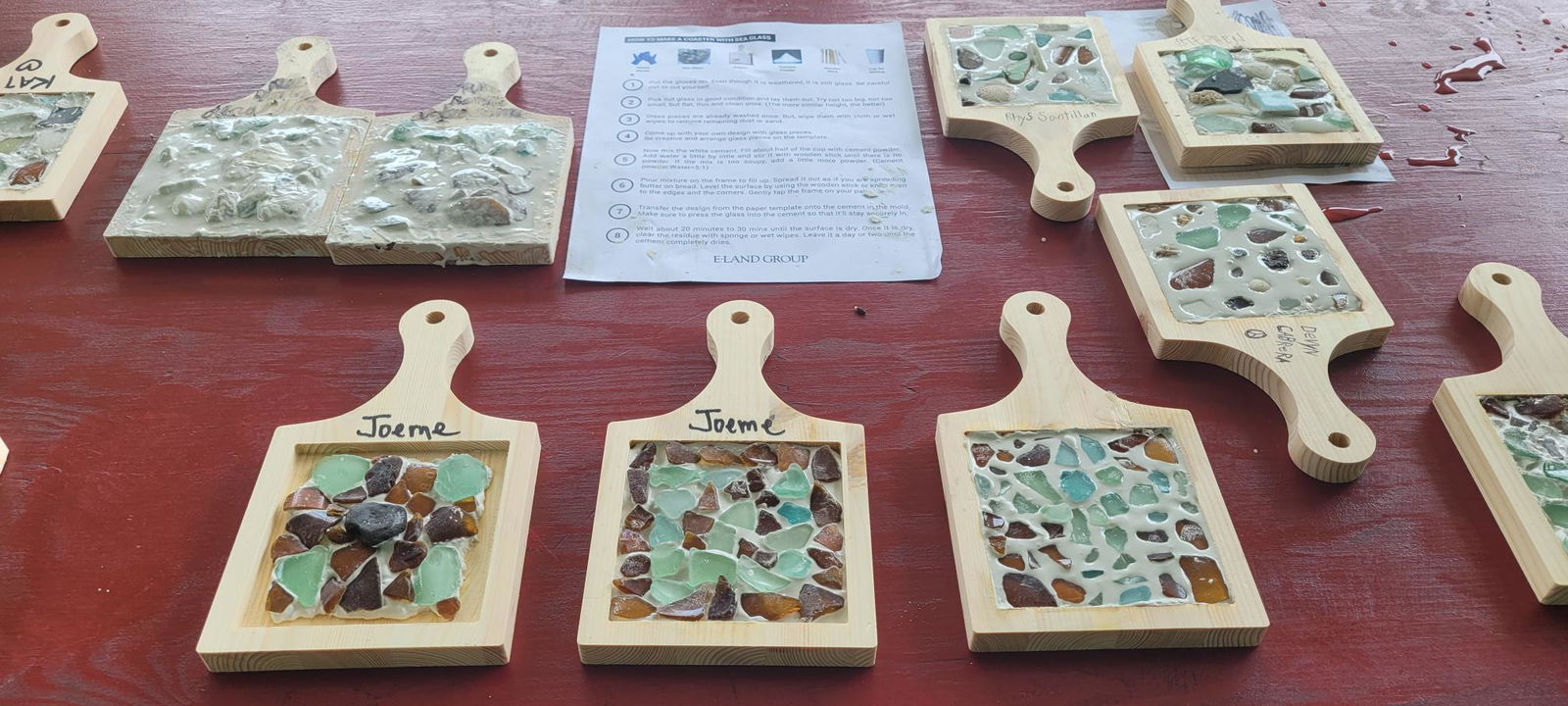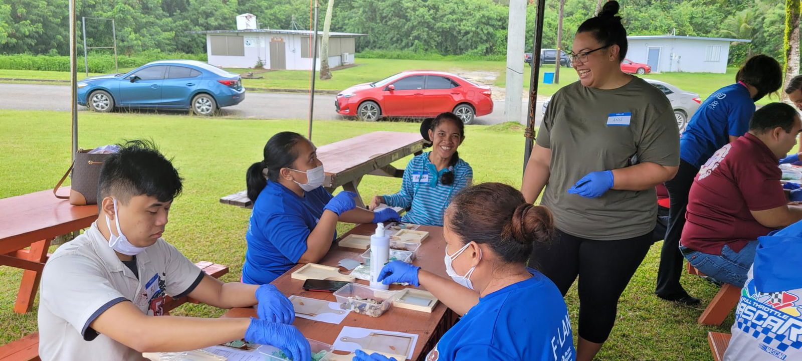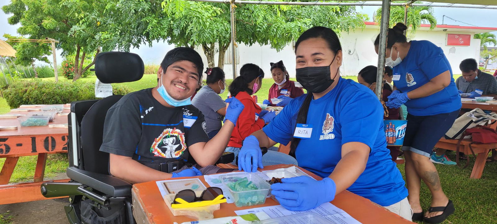 The E-Land Group and the Center for Living Independently in the CNMI gathered on Capital Hill Friday for an arts and crafts activity, creating coasters from upcycled seaglass.