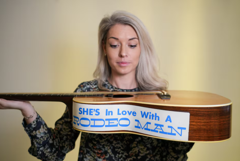 The 1974 000-28 Martin acoustic also has a sticker on the side reading “She’s in Love with a Rodeo Man,” a reference to the hit performed by Texas-born country star Don Williams, according to Bonhams.