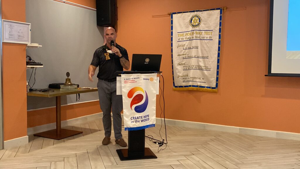 Derek Cutting, owner of Latte Built gym, speaks to his fellow Rotarians about nutrition and fitness on Tuesday at Crowne Plaza Resort.