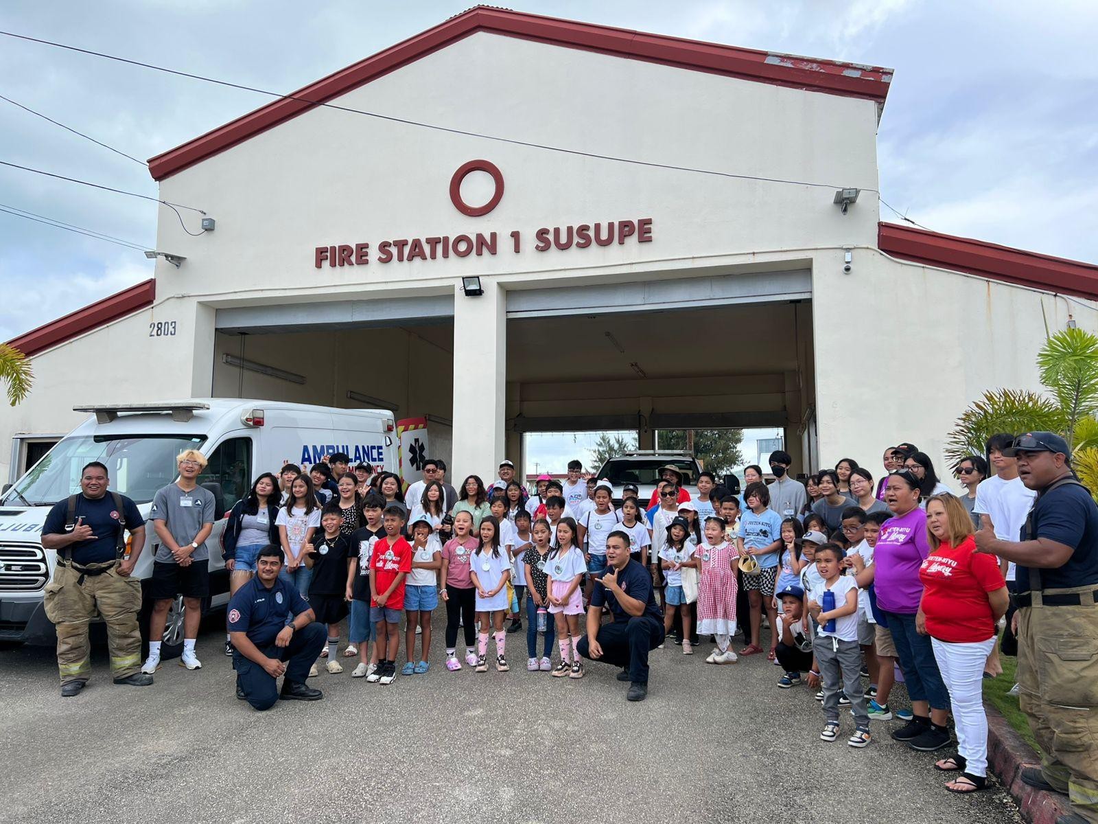 In addition to indoor programming, students participated in educational field trips, including a memorable visit to the local fire station in Susupe, where they learned about emergency medical services, explored fire engines and ambulances, and interacted with firefighters and first responders.