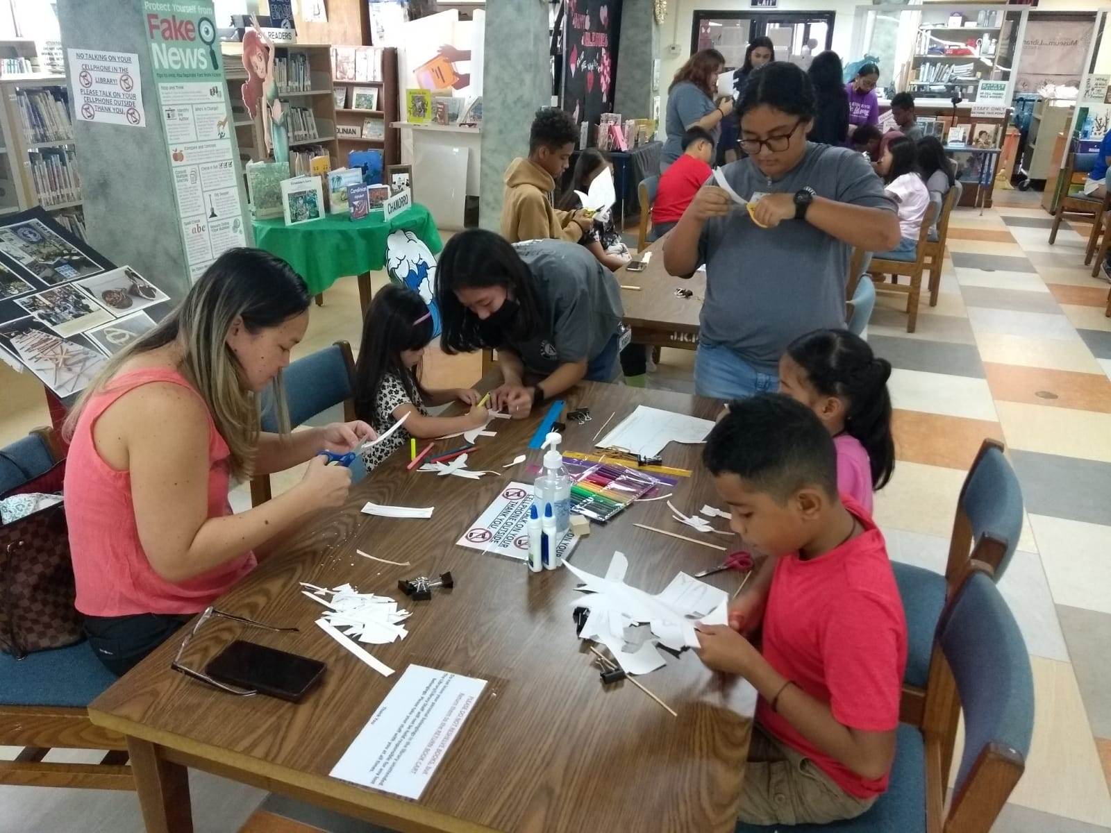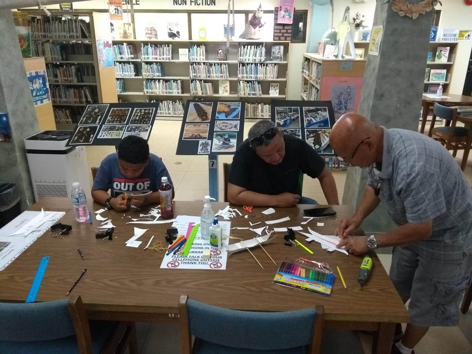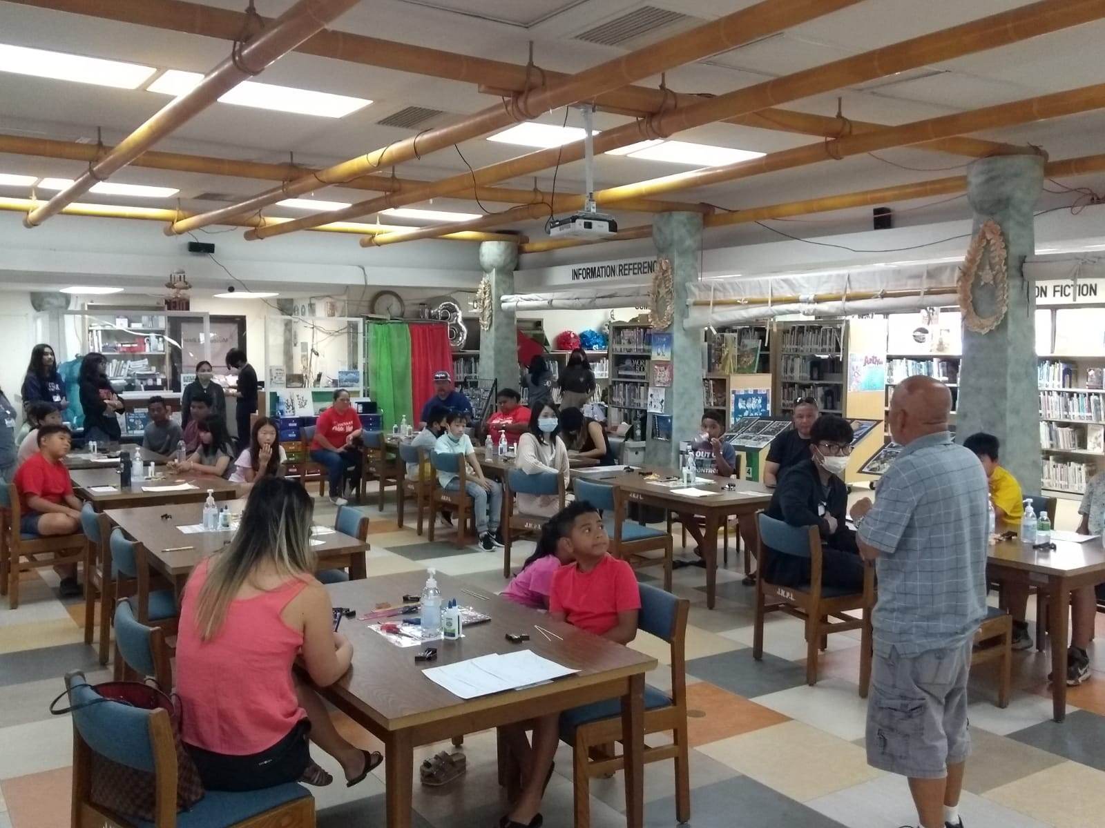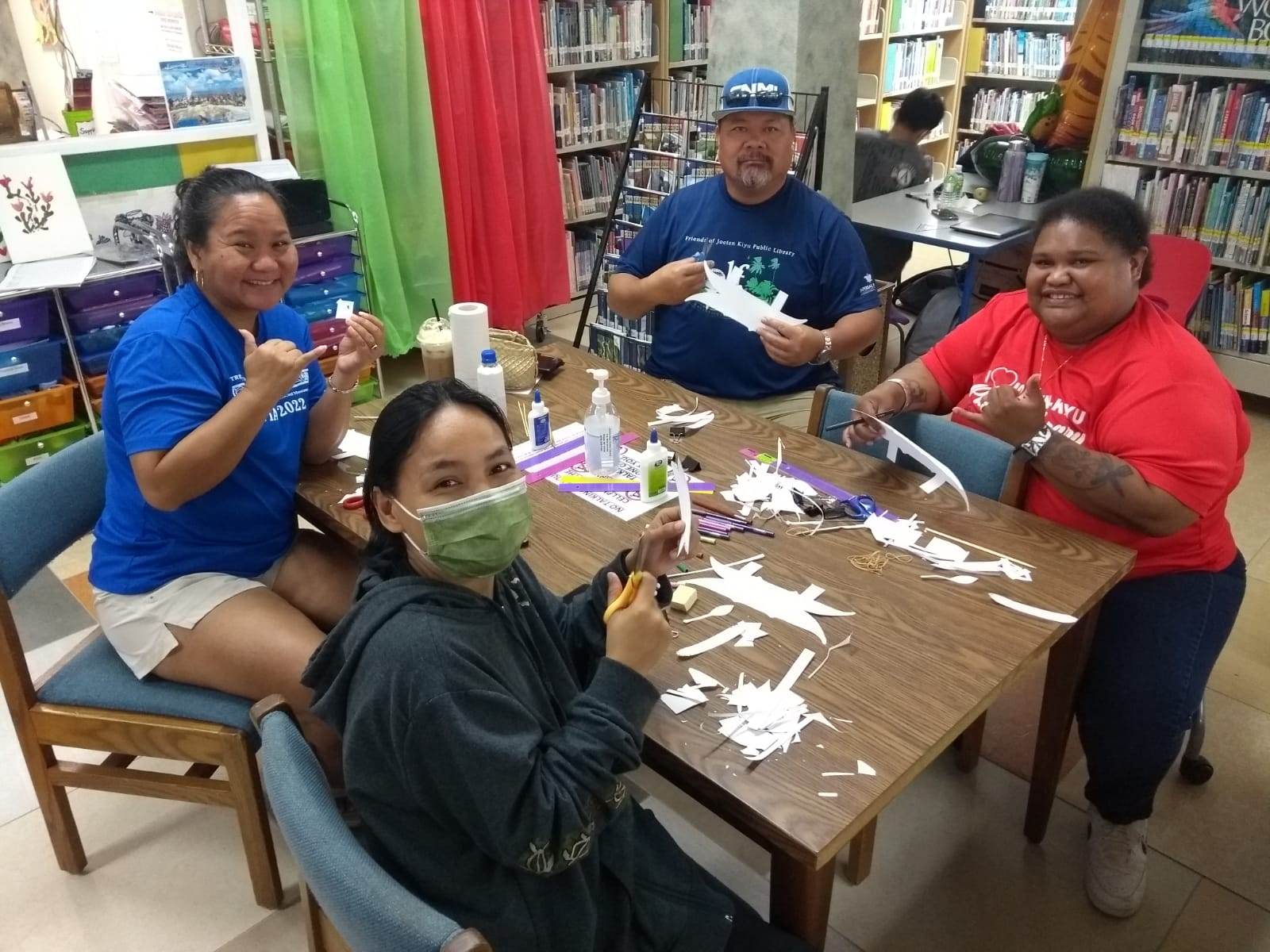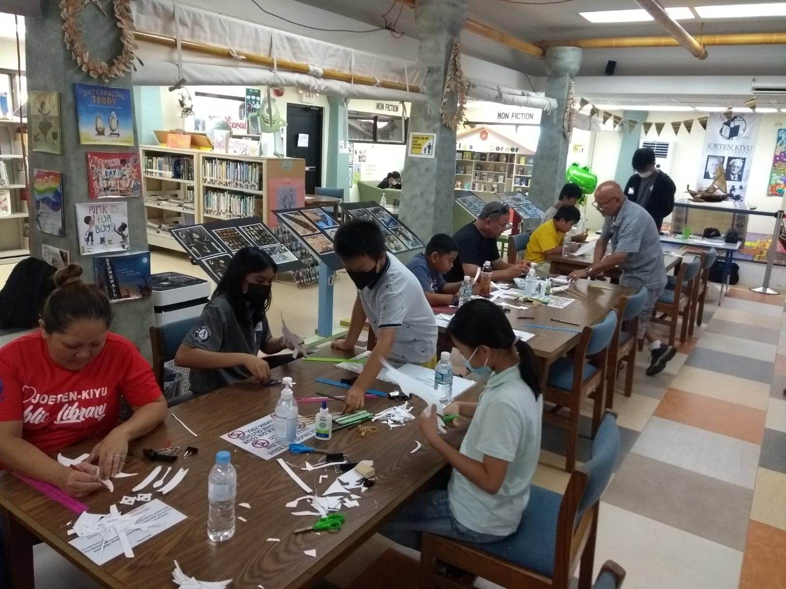 More than 30 participants gained knowledge on the art of paper folding methods used for constructing paddling canoes using basic materials such as index paper, bamboo sticks, and paper templates. Library Director Erlinda C. Naputi shared, “I would like to thank the Northern Marianas Humanities Council for the American Såtba – Ammalaw Program for providing the necessary funding for this cultural class. I would also like to thank Speaker of the House Edmund Villagomez, Reps. Ralph Yumul, Jonathan Attao and Vincent Aldan for donating water for the participants here today. When an opportunity presented itself to have instructor Noel Quitugua conduct a cultural class at the Joeten-Kiyu Public Library, it was truly an honor to share his wealth of historical and cultural knowledge about the CNMI to our patrons. Thank you Senot Noel Quitugua for masterfully sharing your knowledge to perpetuate our indigenous culture at the Joeten-Kiyu Public Library.”