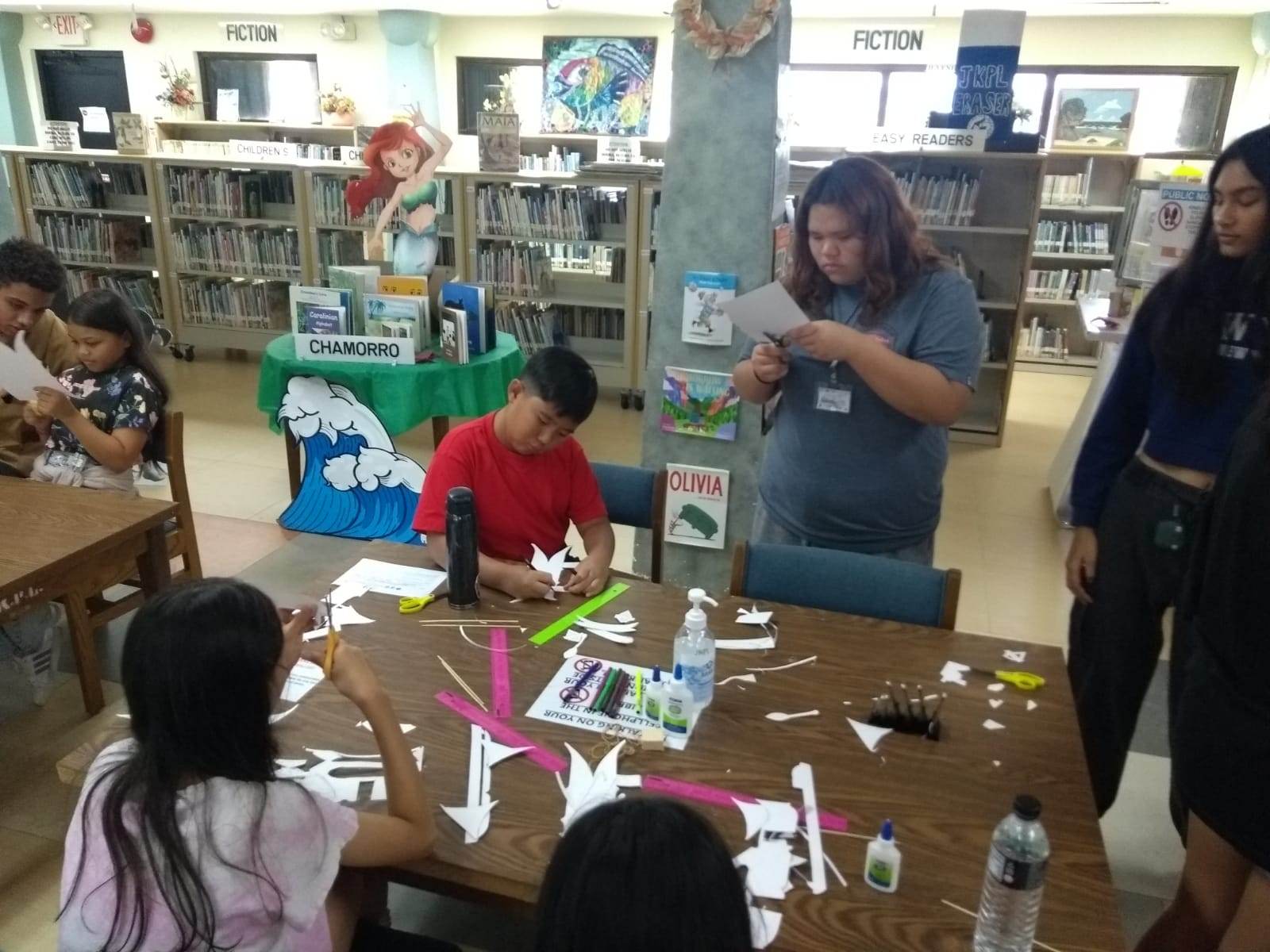 (JKPL) — On Saturday, Feb. 18, 2023, the Joeten-Kiyu Public Library’s Children of Our Homeland Center or COHL a.k.a. the Children’s Library was teeming with excitement as children learned about how to make an outrigger canoe using basic paper-based construction materials.