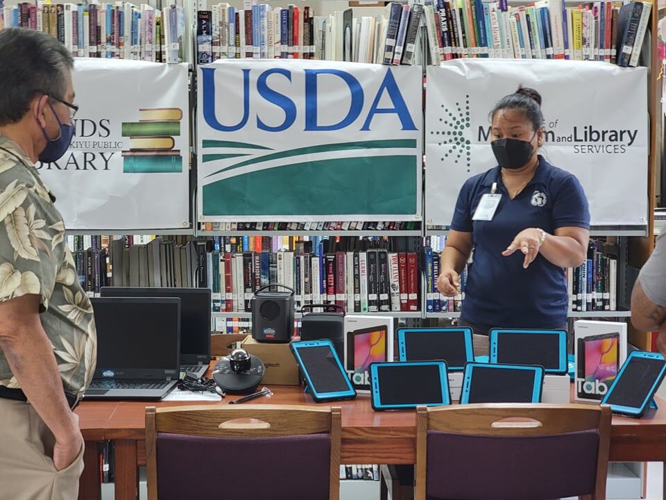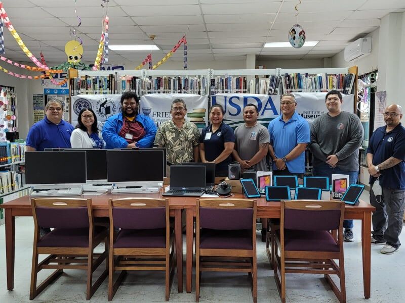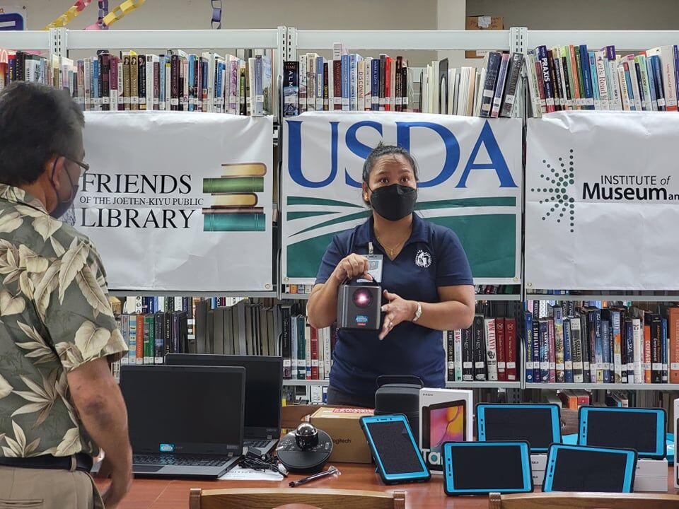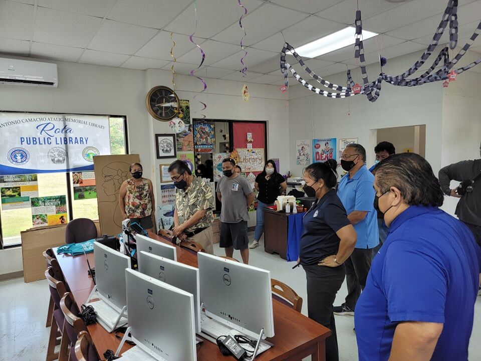 (JKPL) — On Tuesday, March 15, 2022 and Wednesday, March 16, 2022, the Joeten-Kiyu Public Library officially presented technology equipment to the Tinian Public Library and the Antonio C. Atalig Memorial Library on Rota.