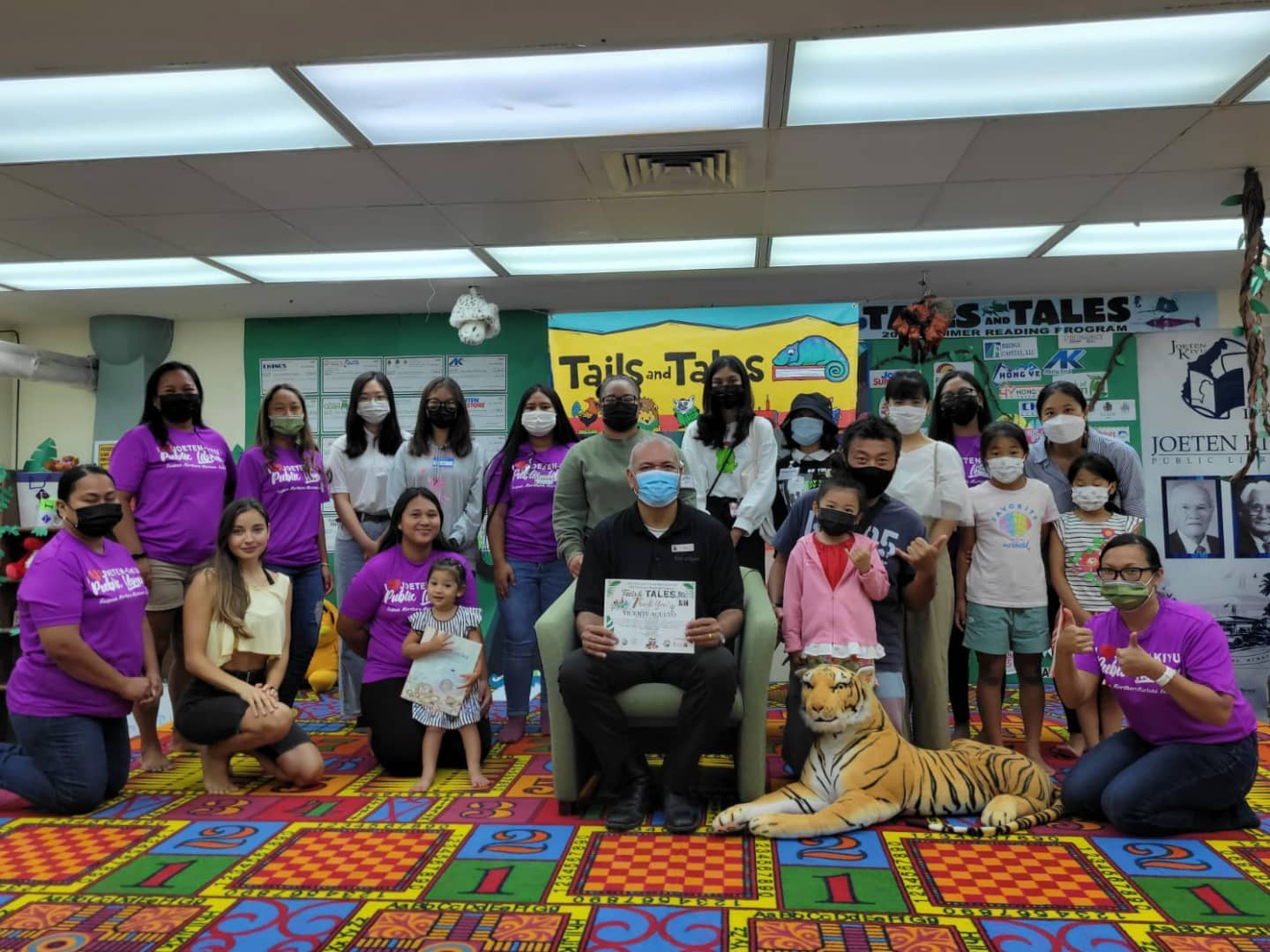 Onsite activities consisted of Saturday Celebrity Storytime featuring the following special guests: local author and navigator Lino Olopai, 2021 Summer Reading Program Leader Sponsor: Bank of Guam, and community partner Saipan Cares for Animals with Executive Director Beth Pliscou along with Bazzie and friends. A special book launch and read aloud from the Lady Diann Torres Foundation in partnership with the Girl Scouts of the Northern Mariana Islands and Stellar Marianas for the children’s book “Kareran Sirena” tinige by Serenity Fujihira, Emma Sablan, and Ariah Villagomez and guided by Miss Marianas 2019 Shannon Sasamoto.