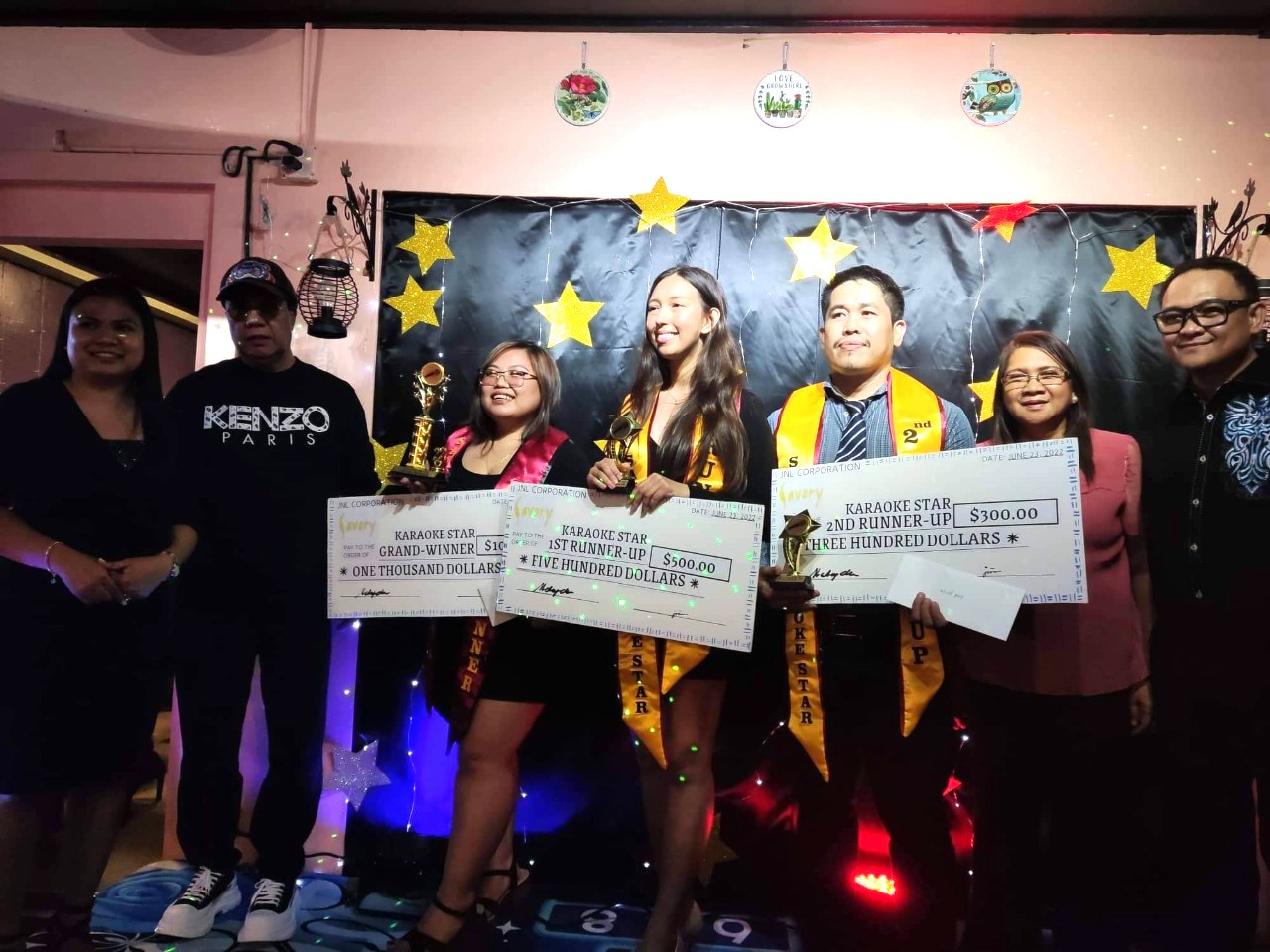 The winners of the inaugural “Search for Karaoke Star” hold their awards while they pose for a photo with the competition judges at the Savory Cuisine on Beach Road in Garapan on Thursday last week. From left are judges Michelle Rueda and Ernie Molina; grand prize winner Lorenzy Leo; first runner up Zoey Stephanson; second runner up Benjie Doniega; and judge Paul Legaspi.
