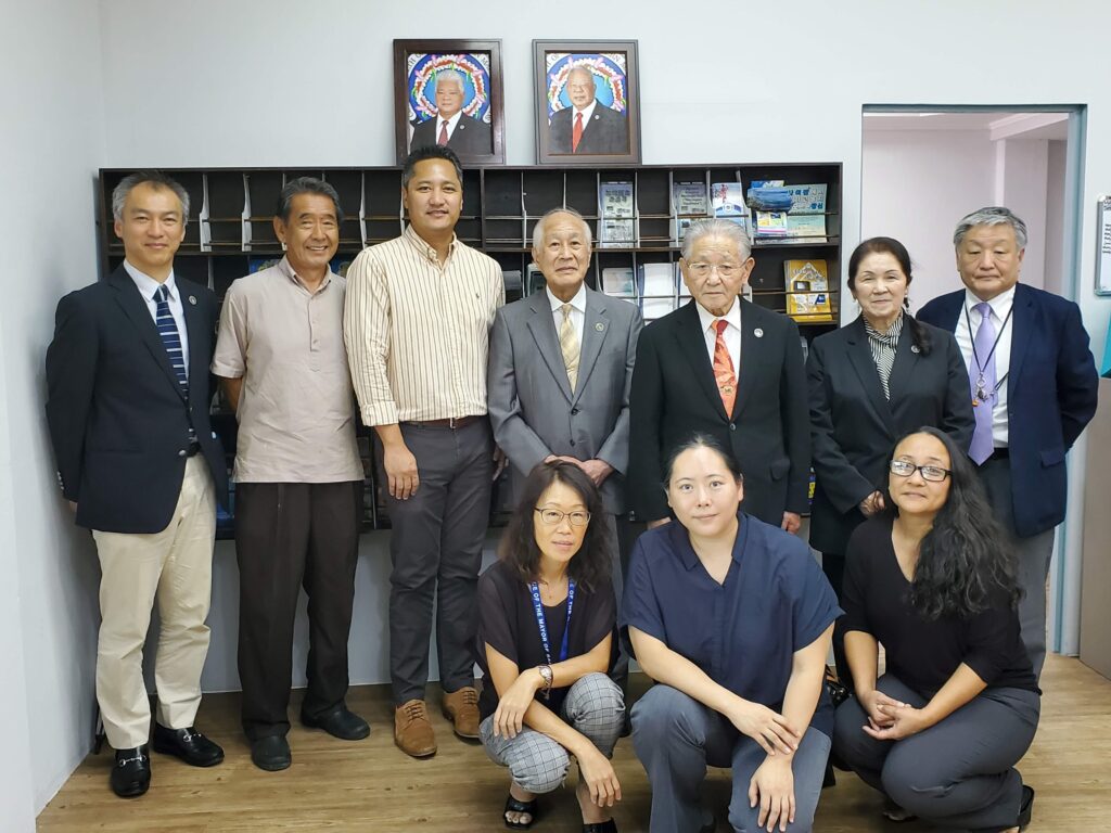 Marianas Visitors Authority Managing Director Christopher A. Concepcion, third left, welcomes Katori Shrine Chief Priest Takeshi Katori of Chiba, Japan, center standing, during a courtesy call on May 17, 2023, at the MVA office in Garapan, Saipan. On Oct. 28, 2023, the Katori group will hold their first annual Katori Shrine Festival at Sugar King Park on Saipan since prior to the pandemic. Also pictured are Marianas Tourism Ambassador Yoichi Matsumura, standing right, Japanese Society Association of Northern Mariana Islands President Seiji Sato, standing second left, association Vice President Hiroko Tenorio, front left, and other dignitaries and MVA staff.